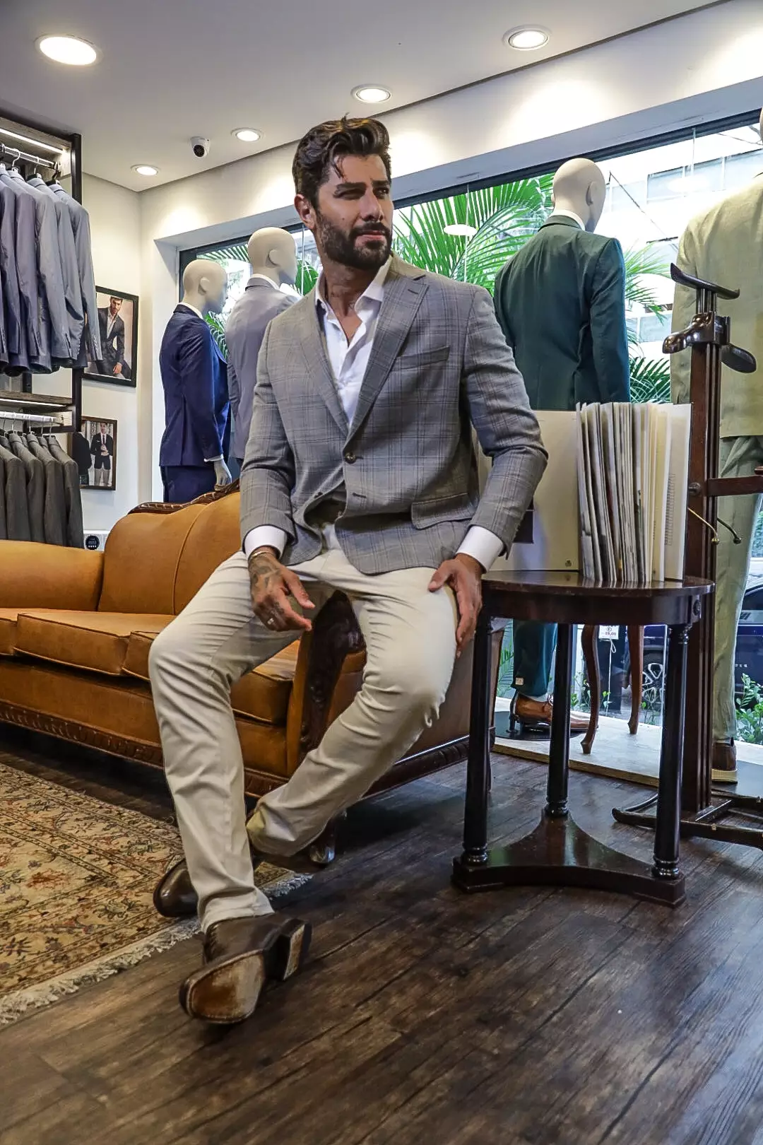 Ternos comprados prontos são feitos para um corpo “médio” que, na prática, não existe. Cada homem tem proporções únicas – ombros mais largos, braços mais longos, uma postura específica.
